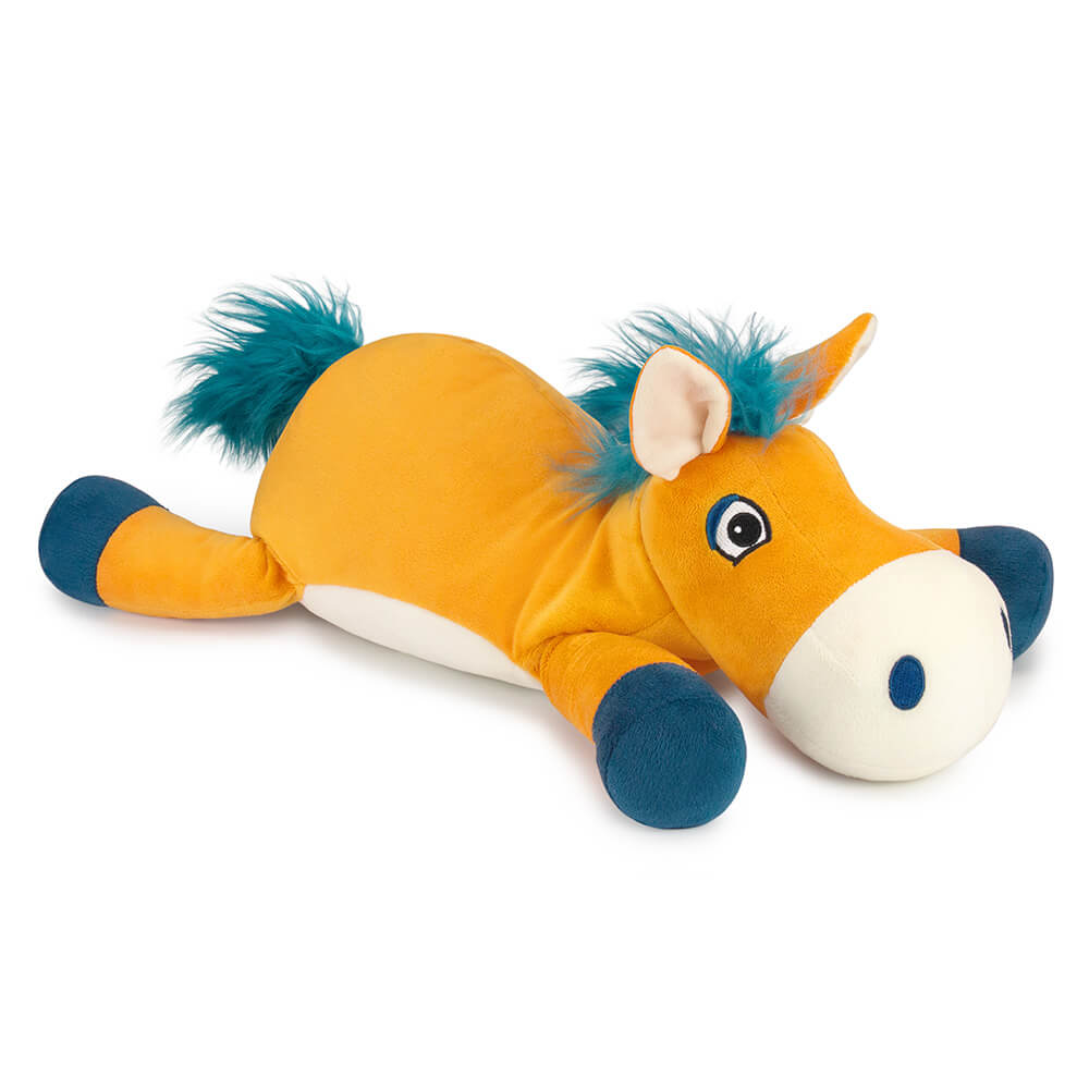 Сладкий подарок Лошадь Янтарь сшита из мягкого софта оранжевого цвета. У нее синий хвостик и ножки. Внутри мягкой игрушки потайной карман на молнии со сладким подарком. Набор конфет 600г Стандарт.